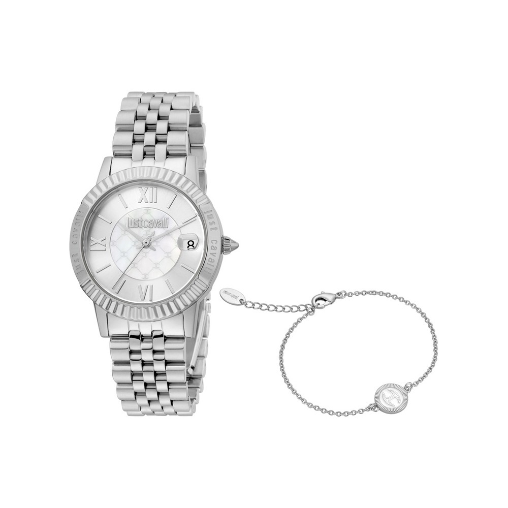 Подарочный комплект, состоящий из женских наручных часов и браслета. Just Cavalli