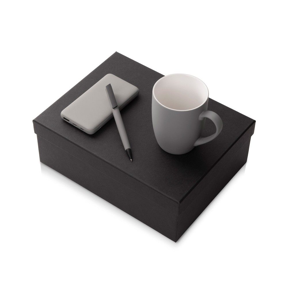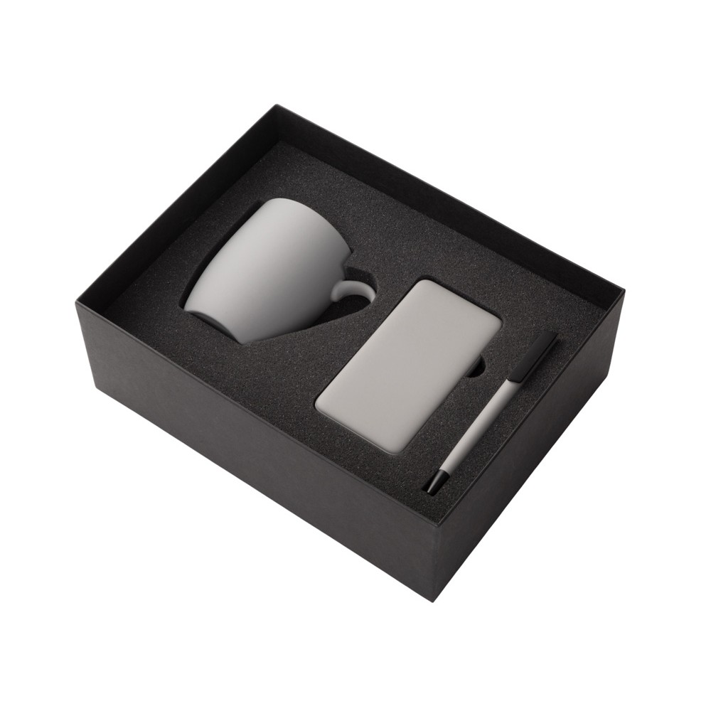 Подарочный набор c кружкой, пластиковой ручкой и повербанком С2, 10000 mAh, серый