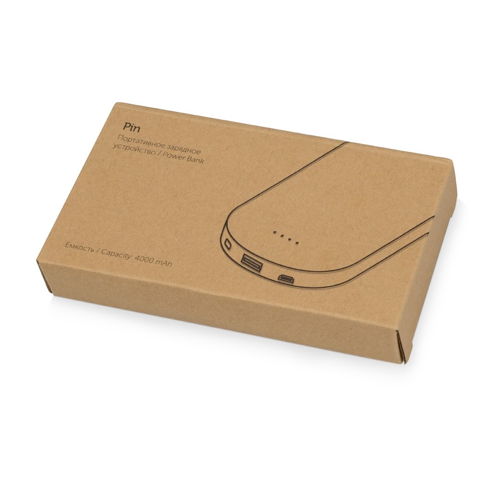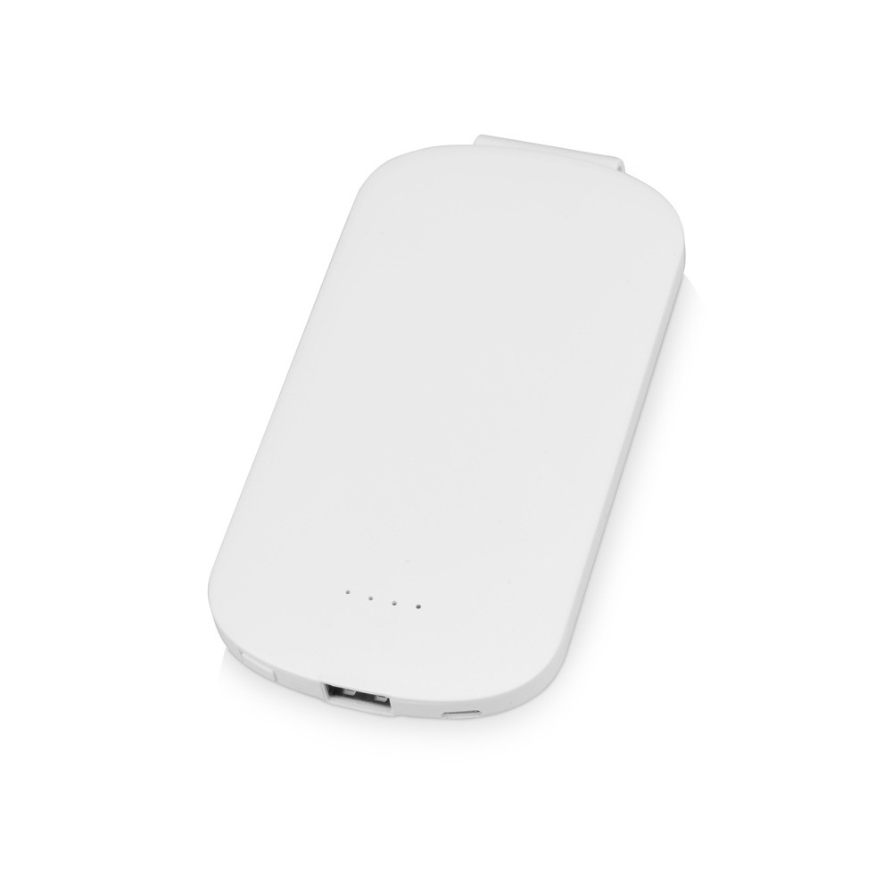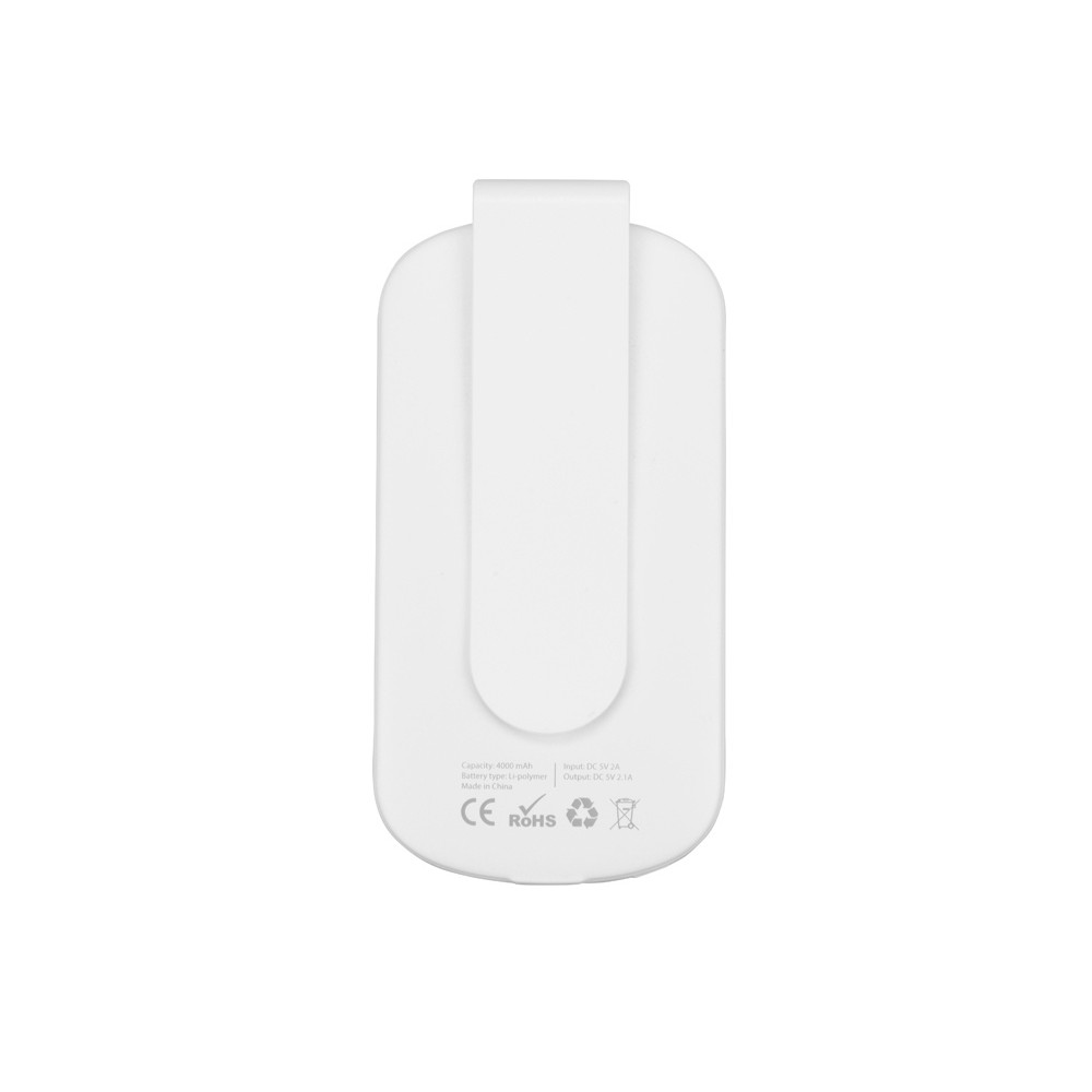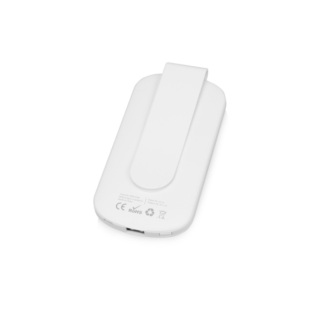 Портативное зарядное устройство Pin на 4000 mAh с большой площадью нанесения и клипом для крепления к одежде или сумке, белый